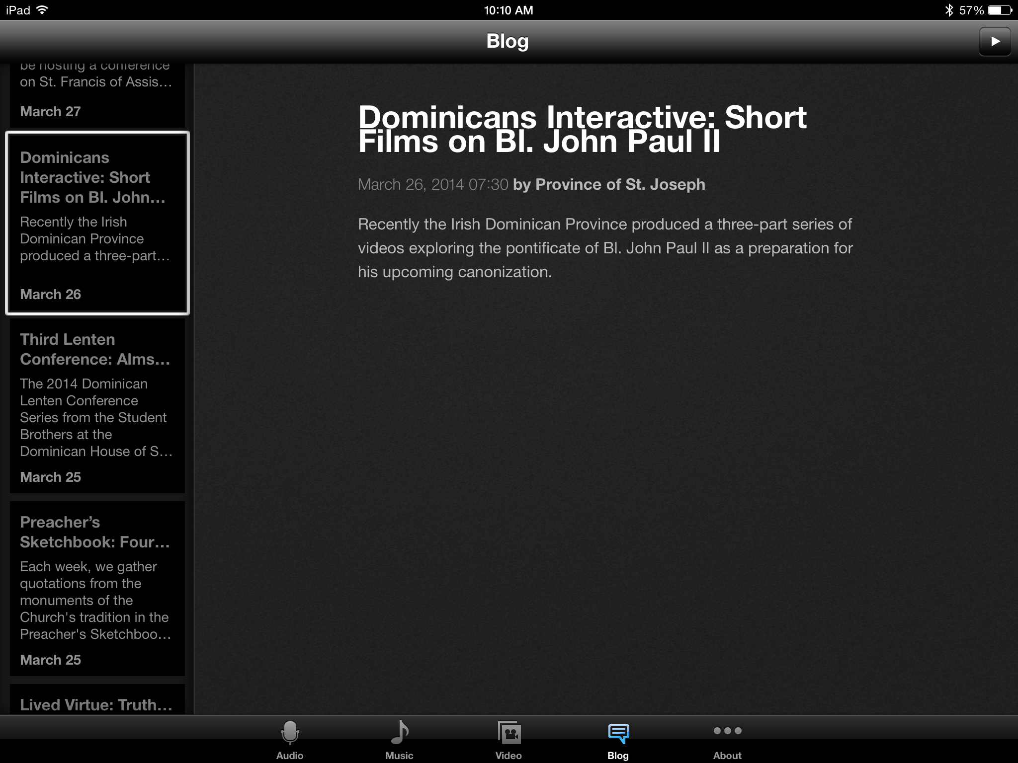 Recently, the Eastern Province released a wonderful app for iPhone, iPod, and iPad called Blackfriars Media. I immediately downloaded it and dove in.