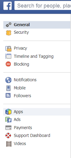 - Click the little gear in the Facebook top banner (on the right) and choose SETTINGS from the drop-down menu.