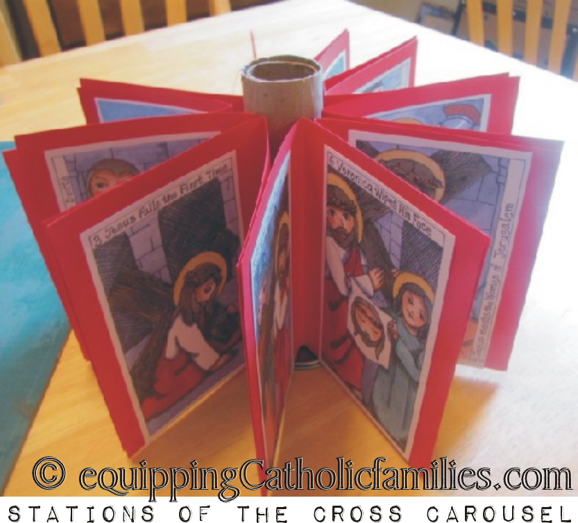 Here is a little craft we did to help us meditate on kid-friendly images while we pray the Stations of the Cross. See the Stations of the Cross Carousel at Equipping Catholic Families.