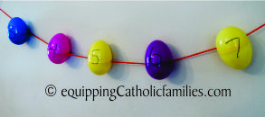 We're looking to fill these Easter Eggs with something more precious than chocolate, for each day of the Easter Season. We're going to number the days of the Easter Season right up to Pentecost on our fridge calendar, opening the corresponding numbered egg each day. We're going to fill them with reminders of Jesus' triumphant Resurrection (Scriptural quotes), hope and joy-filled quotes from the Saints, special prayers and reminders of God's Love for us through Jesus' Sacrifice.