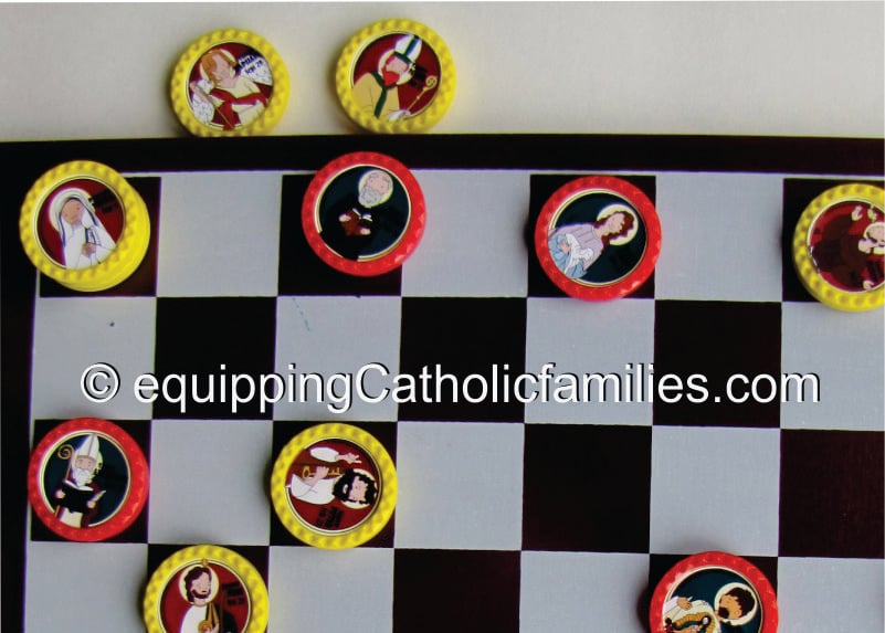 Our most recent Cathletics Craft Kit, converts a number of classic games to be Catholic with our own Kelly Saints Stamps. We think that the more our kids are familiarized with these fun pictures of the Saints and details about their lives, the more likely the Saints will become extended family to us ...and mentors in our Faith journeys.
