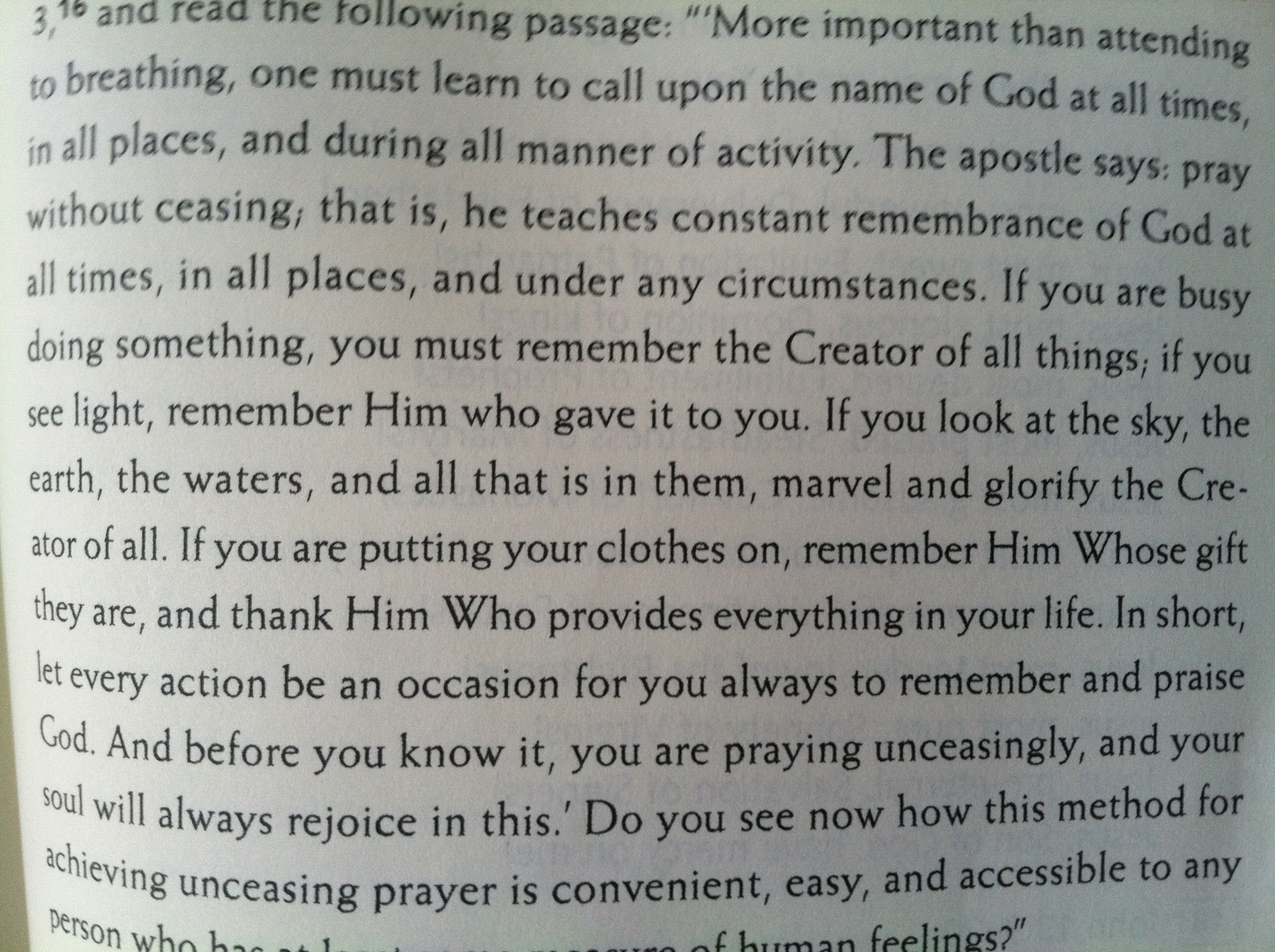 Eventually, the pilgrim meets the man he calls his “starets” a Russian term for a spiritual father and elder monk, and the starets explains Paul’s meaning as such: