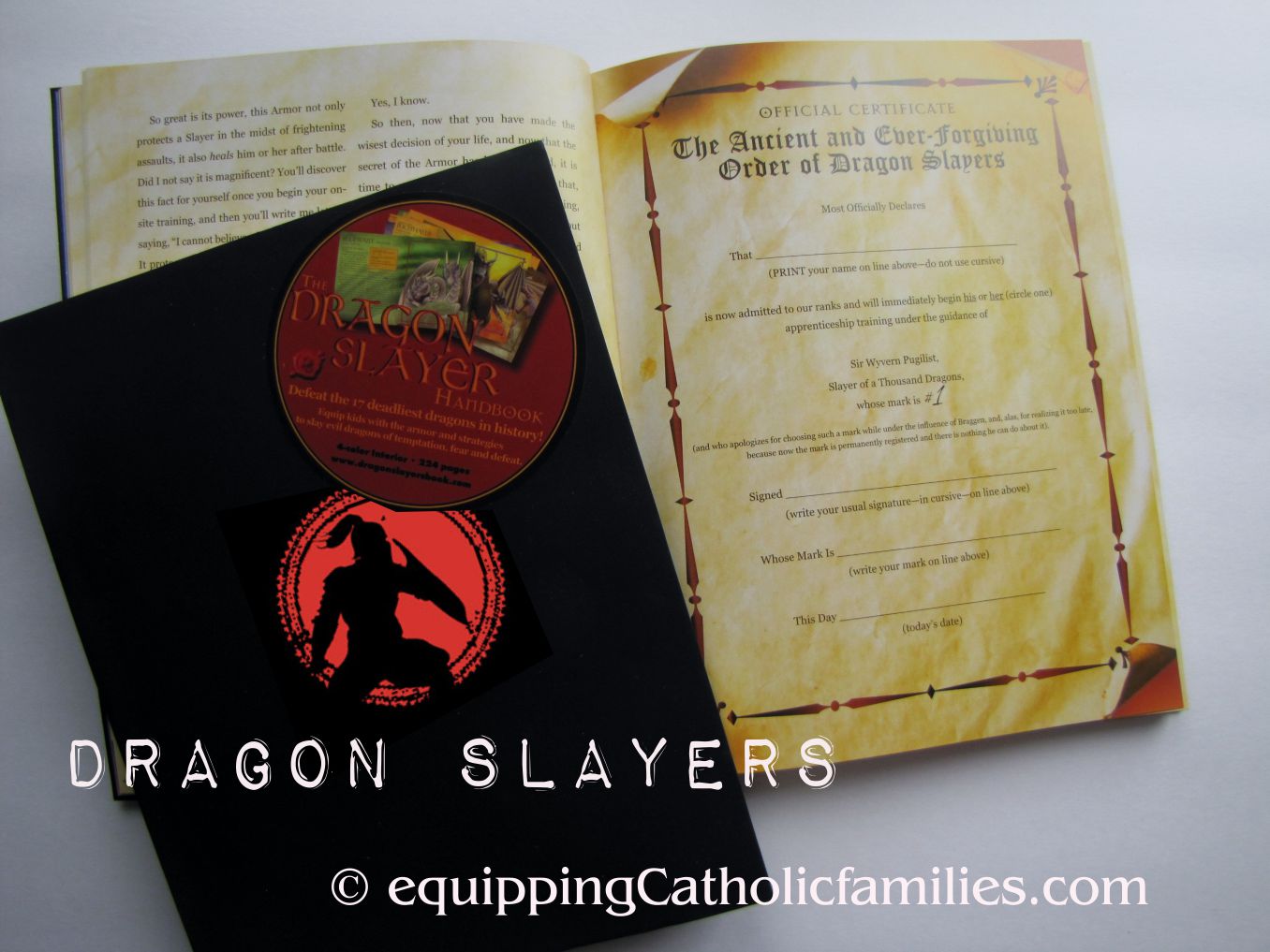 Dragon Slayers is a great book that presents the sins and vices as dragons and trains the eager 8-12 year old how to conquer them. It is such a cool book! It also teaches about the Dragon Slayers of Old…23 Saints and holy figures who are our mentors in the Faith! If you purchase through the Arma Dei Shoppe, we will send you a complimentary Dragon Slayers Progress Report PDF to print for all the little Dragon Slayers who live in your house.