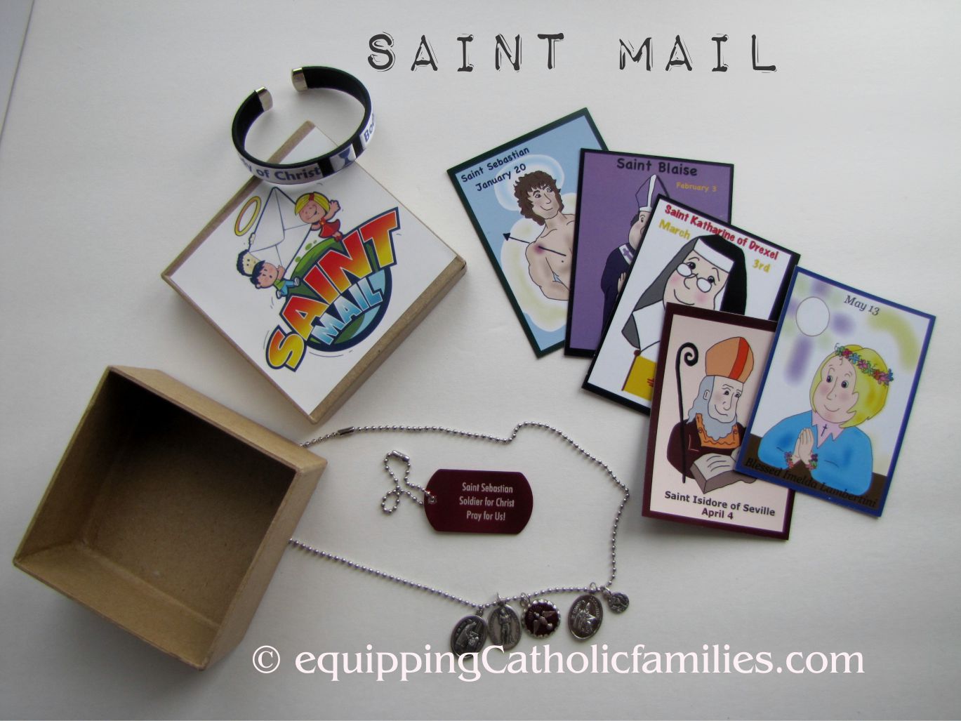 Saint Mail is an awesome subscription service! Each month, the child receives a special package about a particular Saint for the month, complete with a holy medal, Holy Card magnet, at least one special craft, sometimes a coloring page reflecting the Liturgical Season and a beautiful authentic-looking letter from the perspective of the Saint.