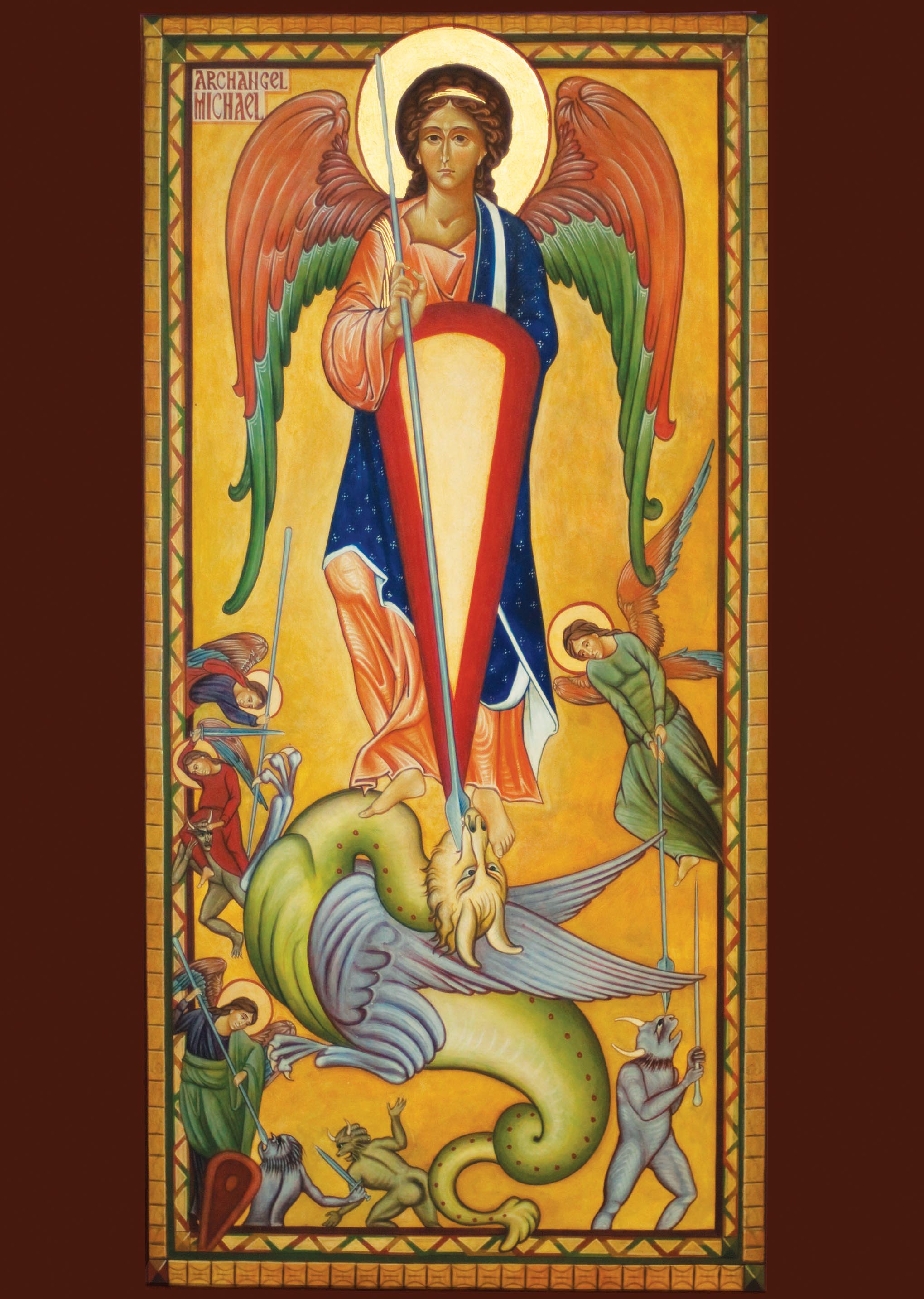 David: I painted the colour images, which are in traditional styles and can be detached and framed - they are in standard sizes. Then we explain how to set up an icon corner in the home and pray to it. All are chosen as images that are fully sacred according to the ancient traditions that govern icons and all other traditions of sacred imagery of the Roman Church equally.