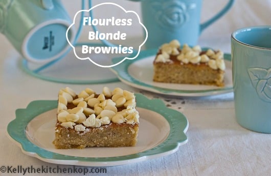 My friend Meg’s favorite treat is blonde brownies, and when I told her I was making her some, she reminded me that she hasn’t been eating flour lately, so I came up with these by pulling a few different recipes together. They were a surprising hit! (I don’t often make up a recipe or adapt one with such success, so I expected this to be another “Friday Food Flop” for sure.) But the kids and adults were all going after them!
