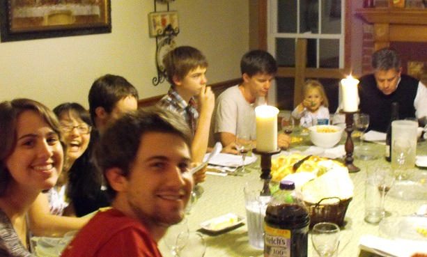 Here is how a typical saint’s day celebration looks in our family: After our dinner meal and dessert, (sometimes it will have something to do with the Saint’s day, but usually it doesn’t.) My husband gets out his iPad at the dinner table. He simply clicks to the website, www.CatholicFamilyCelebrations.com, then to July, then to July 14, St. Kateri Tekawitha. He enlarges the picture of her statue, then of the sign of her shrine—which is of particular interest to us because this lovely saint is native to NY (we are from Pennsylvania—kinda close). He clicks on the link to the shrine’s website and reads from the bottom of that page starting at “Kateri’s final words” — he could read the whole page, but time is running short. He goes back to the July 14th webpage to say one of the prayers. He shows the younger kids the rosary that someone made in honor of Kateri. End of dinner.