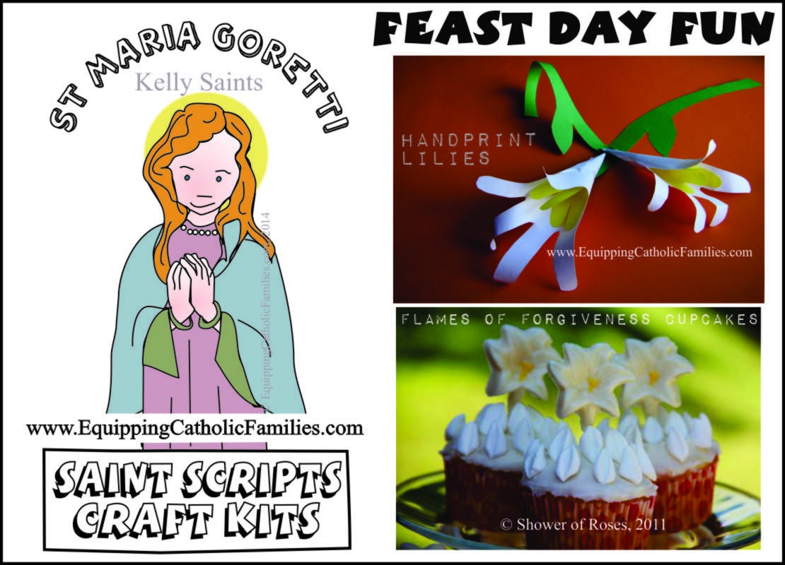 For the Feast Day of St Maria Goretti, we made our own Handprint Paper Lilies and marvelled at the Flames of Forgiveness Cupcakes, both created by Jessica at Shower of Roses!