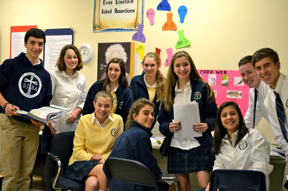 SJBA has classes taught by certified teachers every Tuesday and Thursday for students from PreK to grade 11. The first 12th grade class will begin in August! High schoolers also have classes Friday, and the other days of the week are spent at home doing homework. This system allows families more time together, and the children receive an excellent education at one-third of the cost of private schools. Not only that, but SJBA is thoroughly Catholic and intensely focused on helping families raise children grounded in the faith.