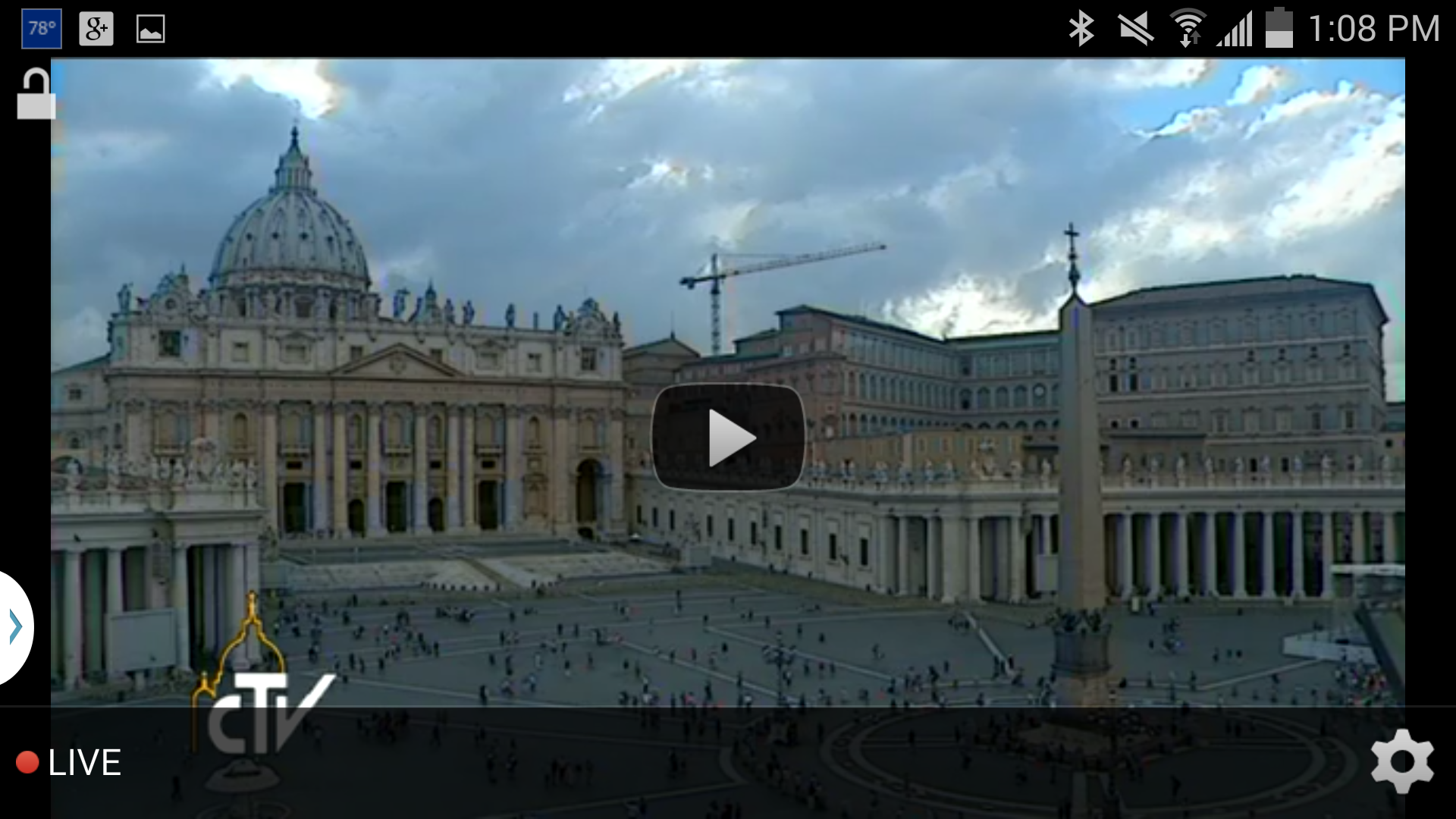 Live - includes a live stream of the Pope's events or a constant live view of St. Peter’s Square* if nothing is broadcasting (complete with angelically chirping birds). *See Image below – it is rather breathtaking some days!