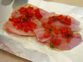 In this recipe, you cook the fish in foil packets, which keeps it nice and moist. You could also use parchment with the same results. I have put the packets on the grill on hot summer days, but, of course, you wouldn't want to do that with parchment.