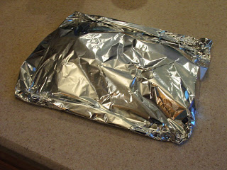 Preheat oven to 350 degrees F (175 degrees C). Place two large sheets of aluminum foil onto a baking sheet (you'll probably need two baking sheets), and lightly grease about a 12 inch square in the center with olive oil.