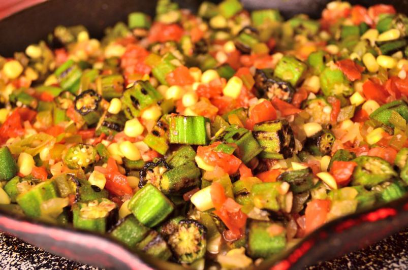 Now that I live in the South I’ve been experimenting with okra. If you have never tried okra, this is a perfect dish to give it a try. Of course fried okra is the way to go, but if you’re watching your waistline this recipe would be better.