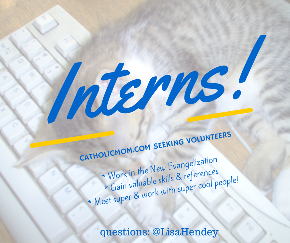 CatholicMom.com and Lisa Hendey are recruiting college (and qualified high school) interns for the 2014-15 school year. Requirements include: