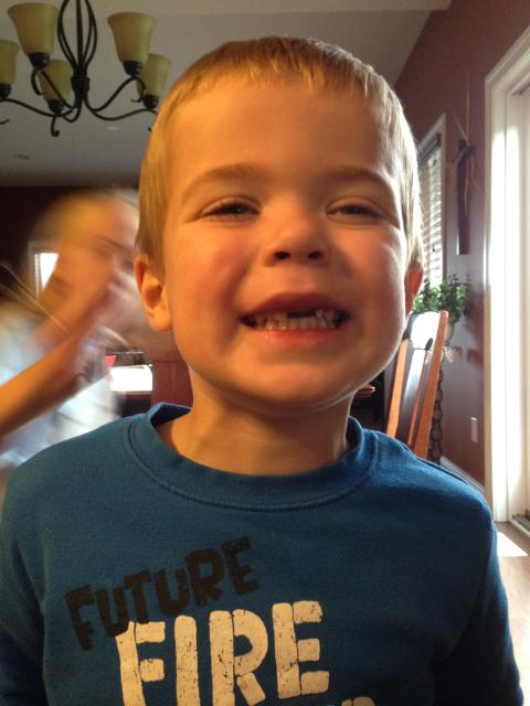 I am not the bravest mom in the world. I cannot even pull out a tooth for the Tooth Fairy. I feared even looking to see what damage had been done to cause that much blood. I braced myself and peaked into Joseph's tiny mouth. I could tell his teeth and gums were banged up. His front teeth were pushed back.