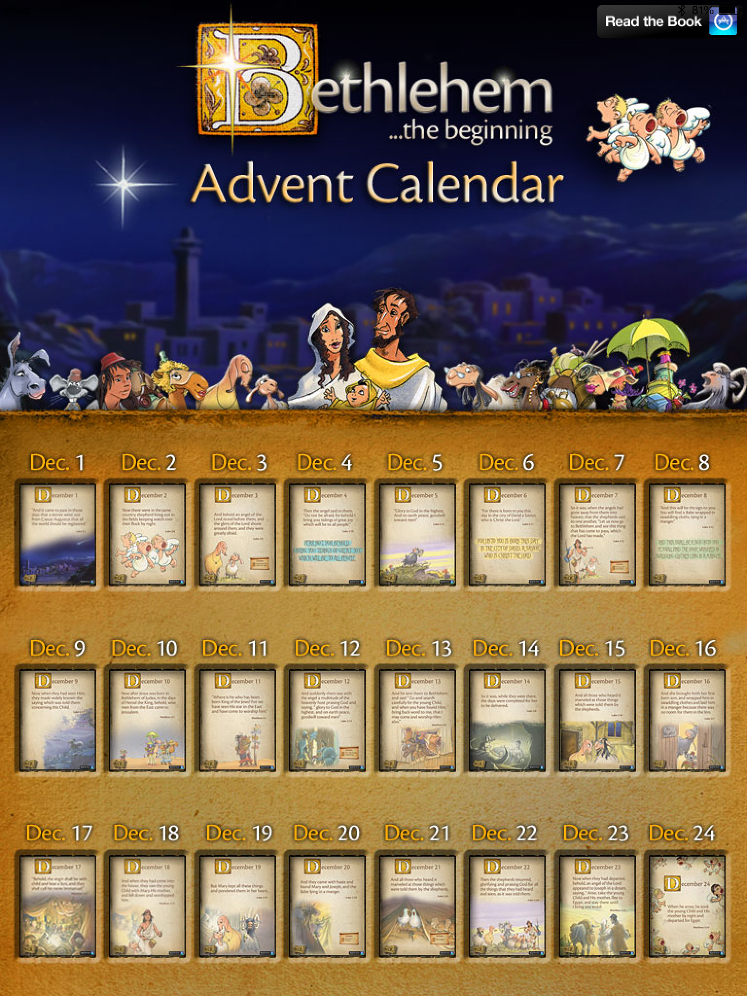 Bethlehem: …The Beginning gives young children a chance to prepare for Christmas by seeing small parts of the story of the Nativity each day throughout December. It's part of a larger project, too: an interactive storybook available in the iTunes library for $3.99. In both apps, the story is told through the eyes of the animals present throughout the Infancy Narrative.