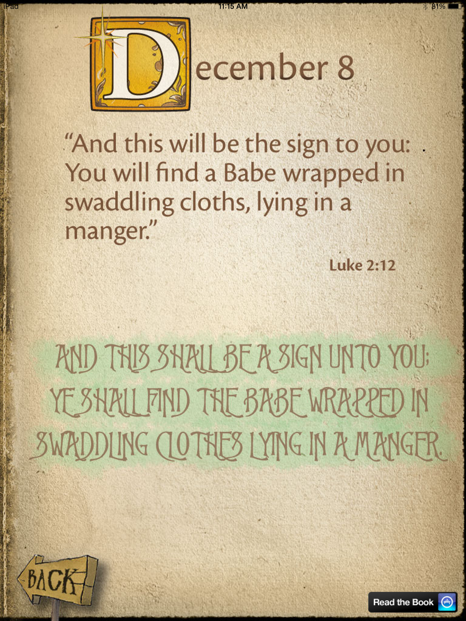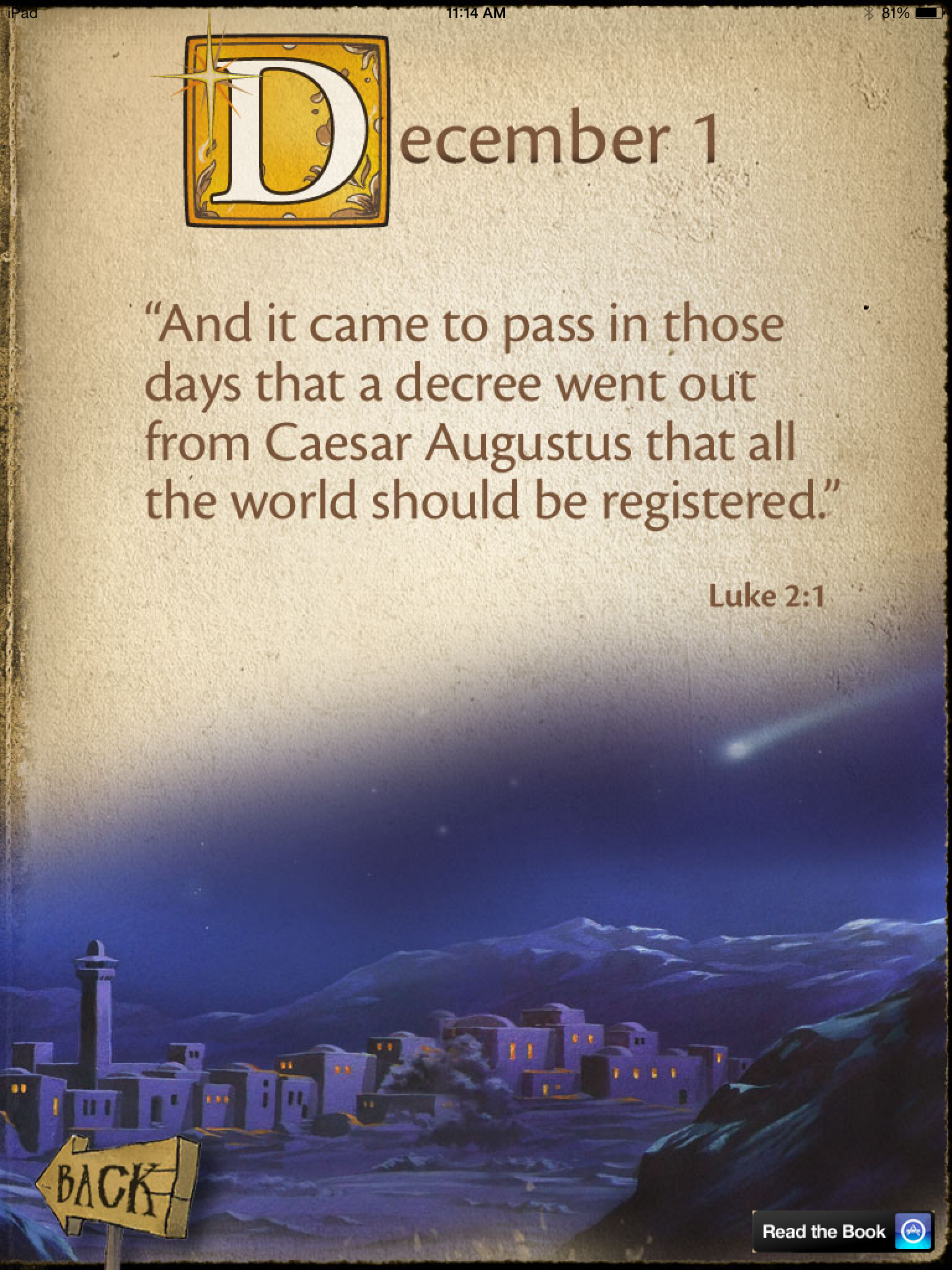 While my own girls are far beyond this interactive Advent calendar and book, I can see it as something younger kids would love, especially the early elementary set. Both apps are by DMiNTERACTIVE, and a portion of the book's proceeds go to the Salvation Army.