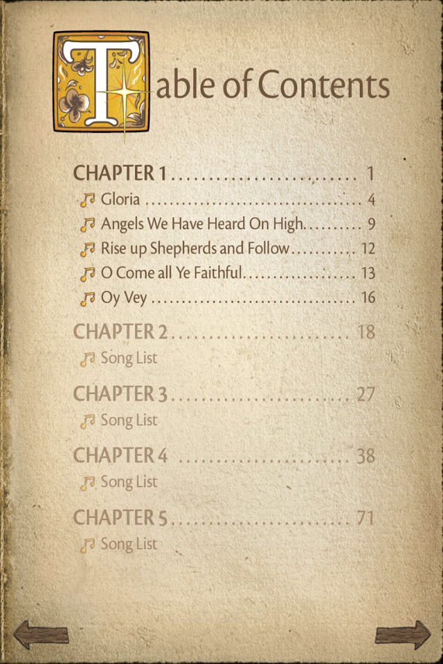 The drawings are charming, and there are opportunities in both the calendar app and the e-book for interaction with Easter Eggs, which include songs fitting to the story. The Lite version of the book that I downloaded was only the first chapter of the story, but the full version contains 5 chapters, 23 songs, and more than 40 full-color illustrations to entertain your young readers.