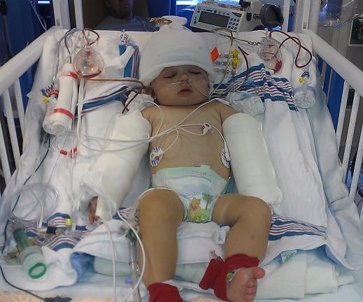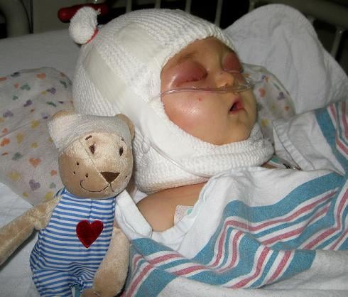 My ten-month-old grandson is a happy, quick, engaging little fellow who was born with the plates of his skull fused together prematurely. As a result, he is facing major surgery to cut the plates and reshape his head which has grown lopsided.