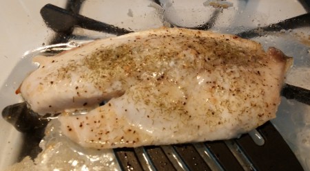 Preheat oven to 350 degrees. Brush the bottom of a 9X13 glass pan with a little olive oil. Place fish fillets in pan and sprinkle with seasonings. Add 1 tsp butter on top of each fillet. Cover dish with foil. Bake 15 to 20 minutes, depending on the thickness of the fish.