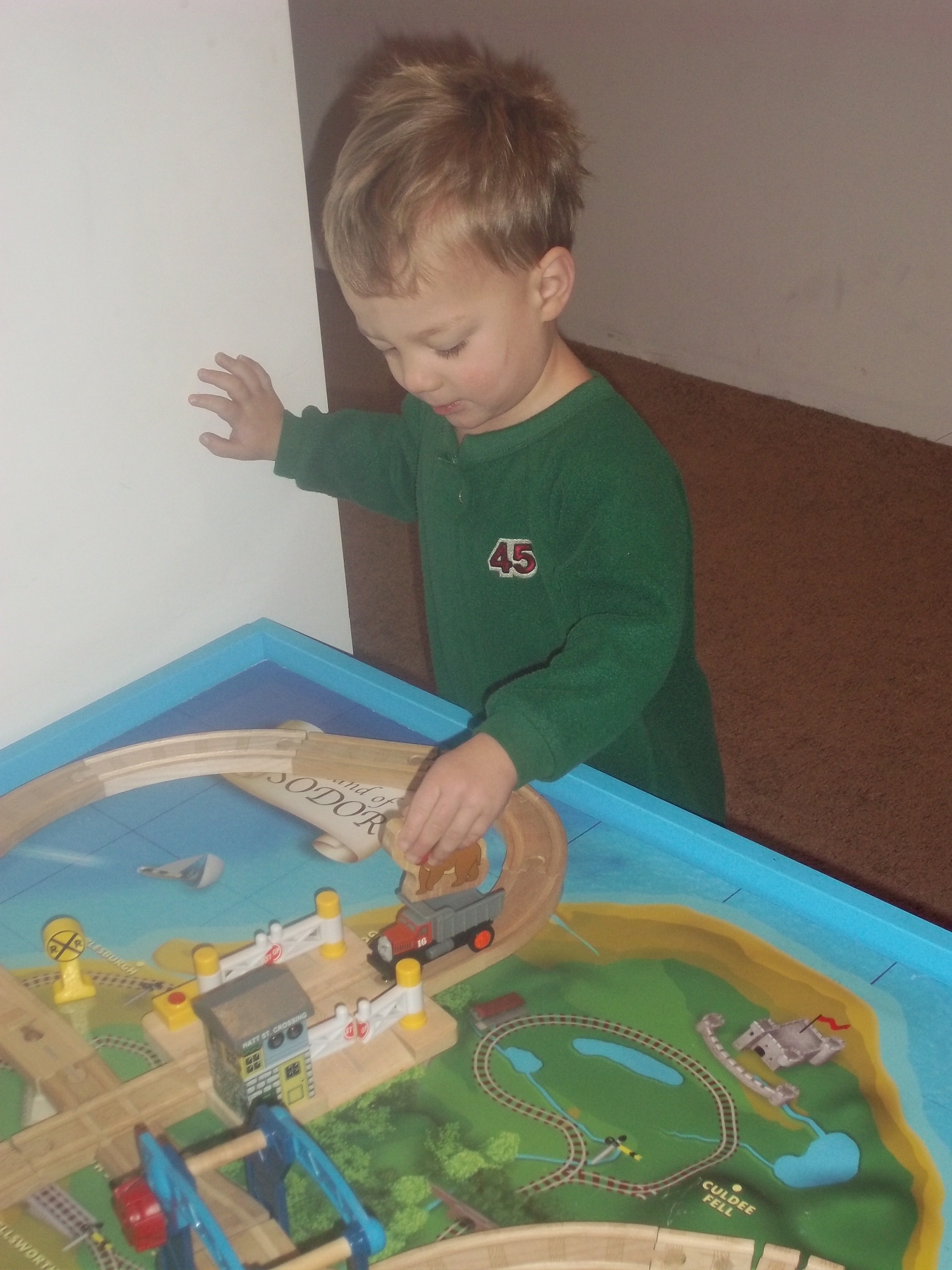 1. Wooden Train Sets - Half the fun is in building the tracks. The older children love to set them up for the little ones to play.