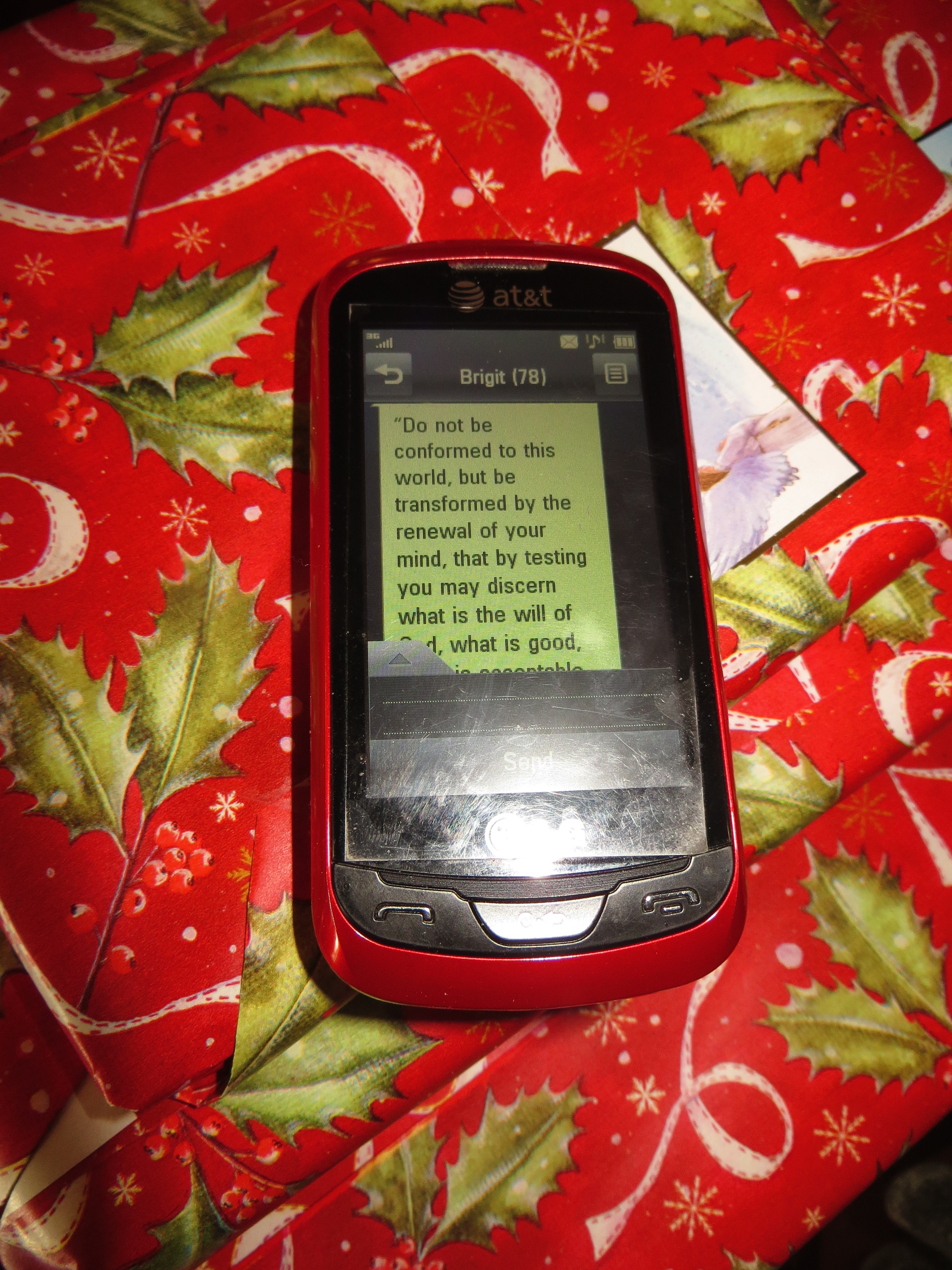 The verse she shared is about our call as Christians to resist the temptations of the world. It occurred to me that the cell phone is one of those huge temptations. But we are working to transform the use of it.