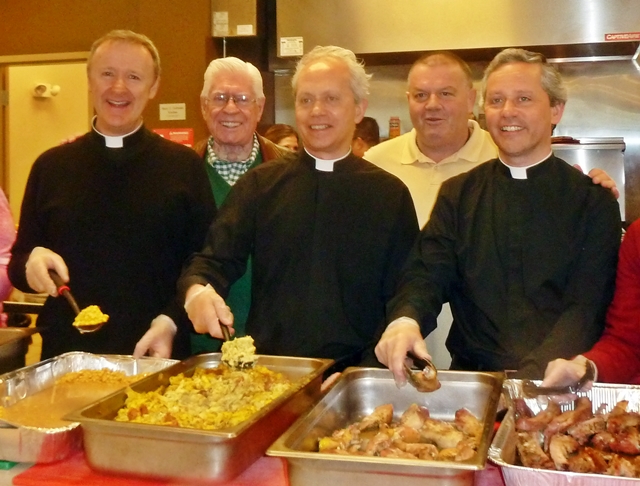 It was not your typical Friday at St. John’s Food Pantry in Worcester. As some five hundred of the city’s poor streamed in for a hot meal, three new faces greeted them. These men radiated warmth and kindness as they dished up generous portions of scrambled eggs with ham, Belgian waffles, and various meats and vegetables to grateful patrons.