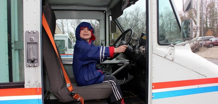 My son gets excited when our mail carrier delivers our mail. He is eager to check the mailbox as soon as he can. Sometimes he even gets it hand-delivered to him. He gets to see the friendly face that drives through storms and works overtime at Christmas in order to deliver packages and letters to the intended loved ones.