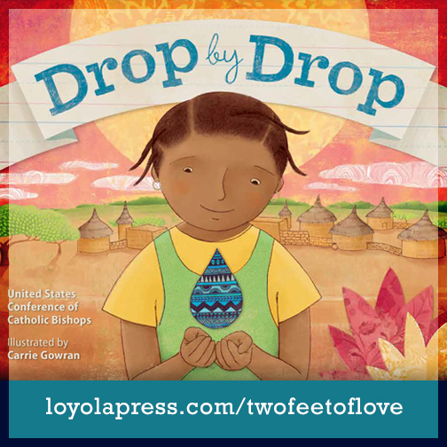 In Drop by Drop, Sr. Mary Jerome's classroom receives a visit from her nephew, Mr. Mike, who works for Catholic Relief Services in the West African country of Burkina Faso. He invites the students to “journey” with him across the world to learn about how lack of water affects a girl name Sylvie and her family. The children learn how Sylvie and her sisters are unable to attend school because it takes several hours each day to collect water for their family’s needs. Sylvie’s community becomes involved in a special Water Project, which solves the problem and allows Sylvie to finally go to school. The class of students in the U.S. decides to get involved in helping other communities like Sylvie's have access to water. This book aims to foster awareness and reflection for children in the U.S. as they learn how lack of access to water affects children their age around the world. The book also celebrates the work and witness of the Church through Catholic Relief Services, describes actual solutions being implemented, and gives an example of how children in the U.S. can be involved in those solutions. This book is accompanied by worksheets for grades 2-4, available at www.loyolapress.com/twofeet.