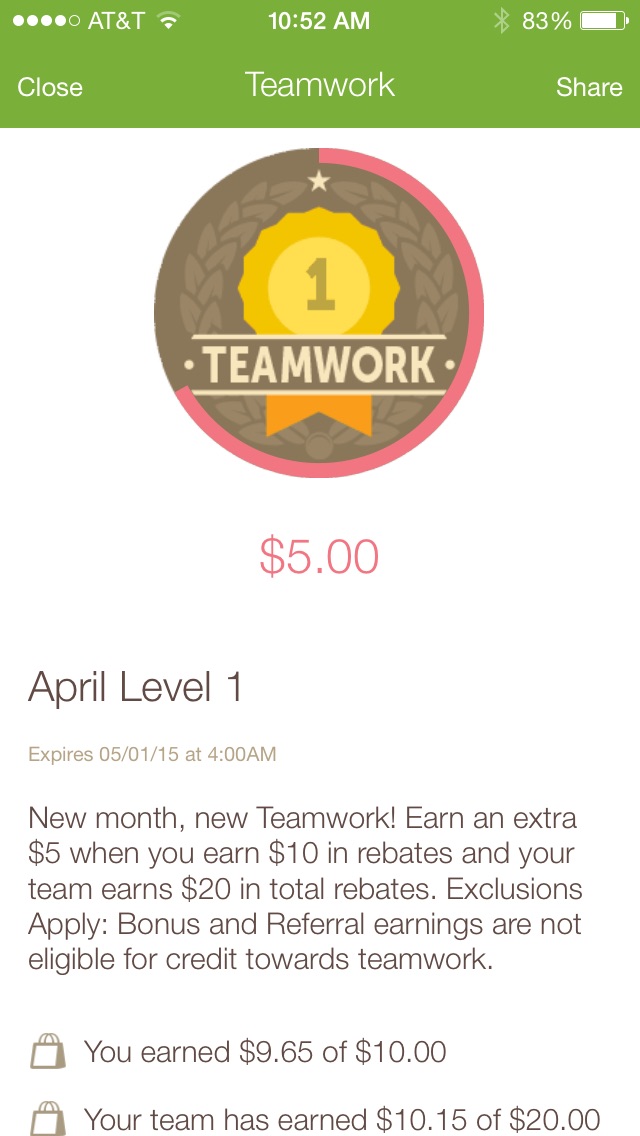 Ibotta also allows you to build a team of shoppers whose rebate totals combine to gain bonus rebates for everyone on the team! Each member has a unique code, and if someone signs up with your code, you're on a team together. The more friends who use Ibotta together, the faster you all earn rebates.