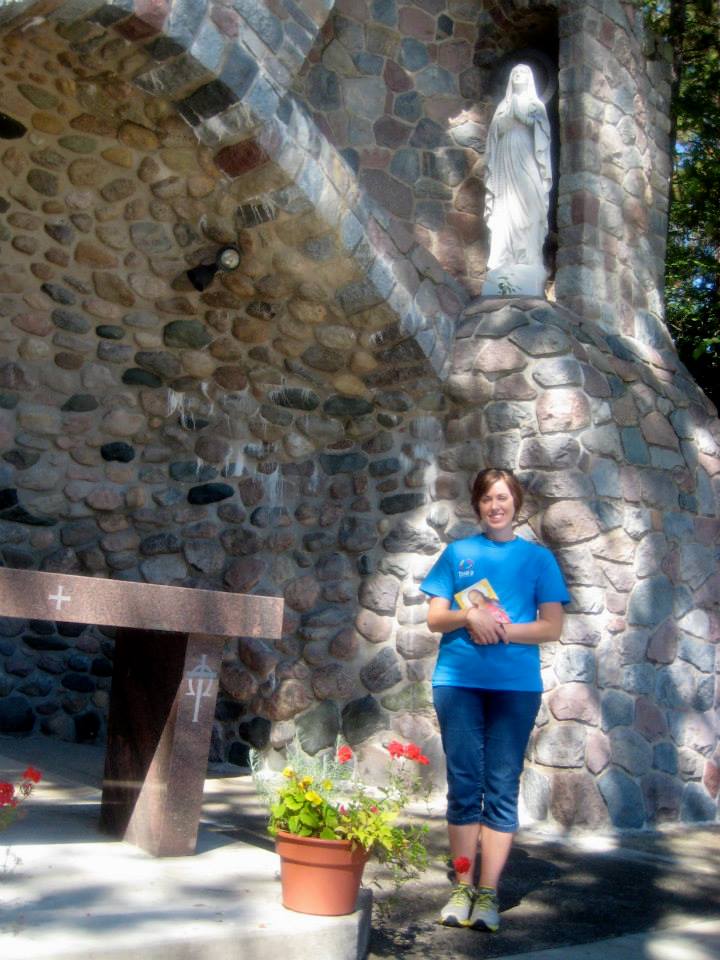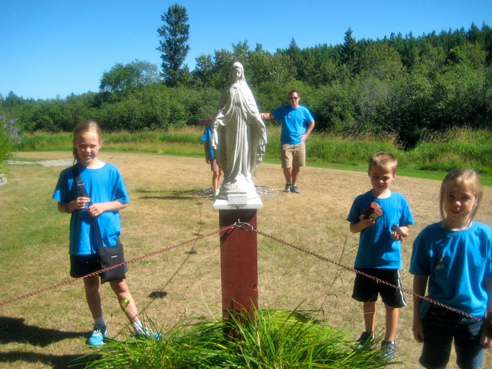 Visit a local shrine or find one near your vacation spot. Here is the author's family at the living Rosary of the Grotto of Our Lady of Lourdes in Two Inlets, Minnesota. Photo courtesy of Sarah Damm.