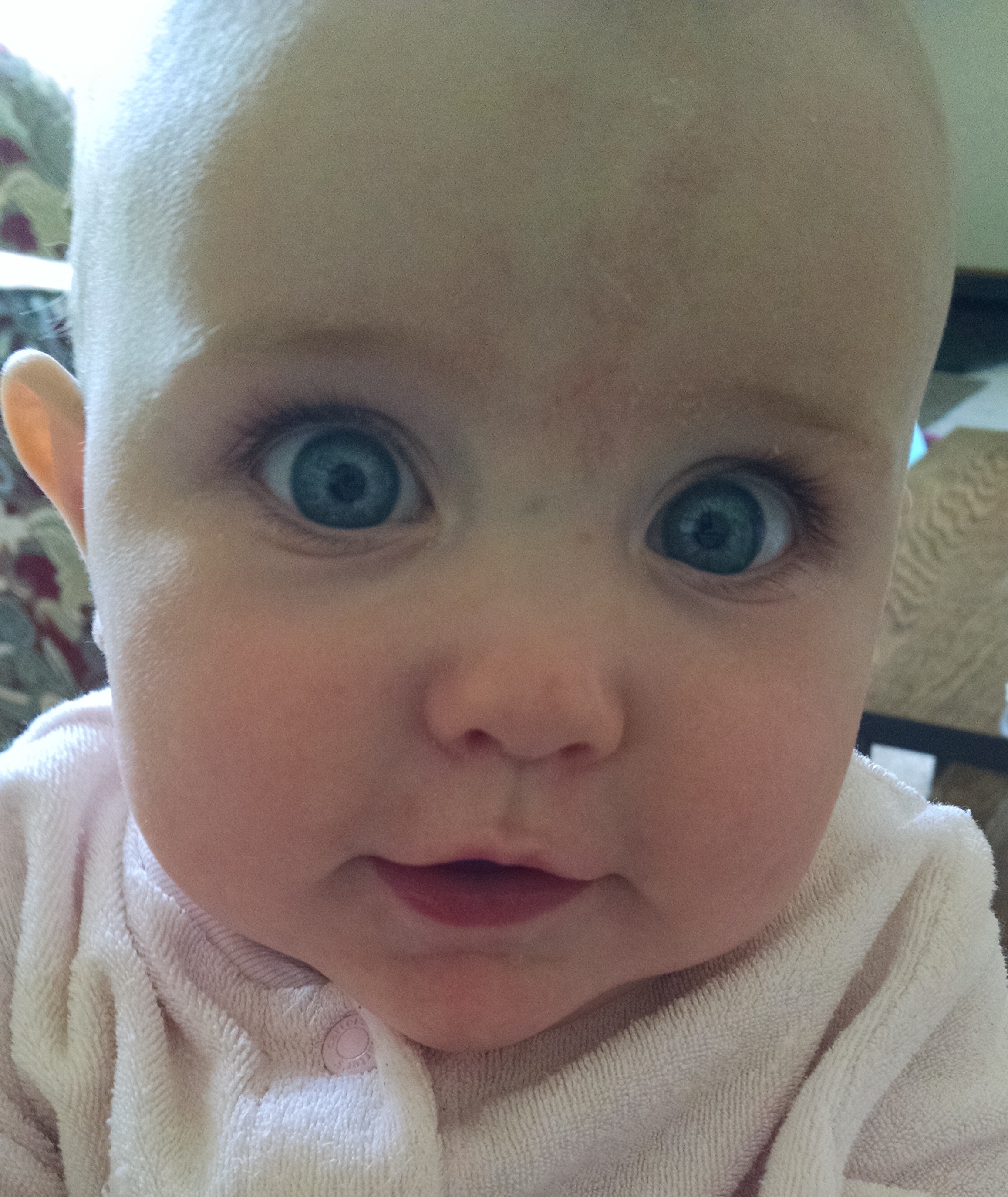 The tiny pink bundle next to me wiggles a bit. I stroke my daughter’s soft brown hair and smile as she studies the pattern on the pillow next to her, her eyebrows knit seriously like her mom’s often are. I admire her little nose, her tiny eyelashes, and her precious ears that stick out a bit at the top, also like mine. I marvel at the miracle of her who was once, impossibly, curled up inside me and smile. My Veronica, now three weeks old.