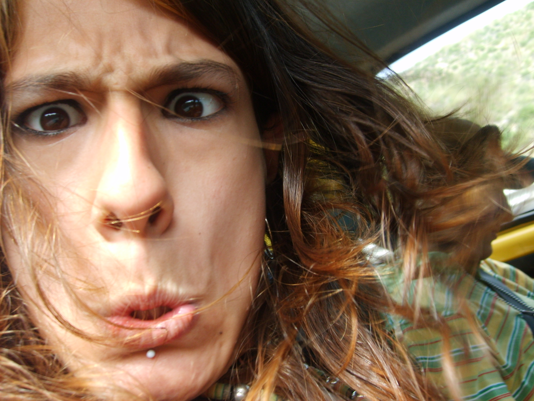 This girl is NOT happy. It looks as if she's mad at the world, doesn't it?