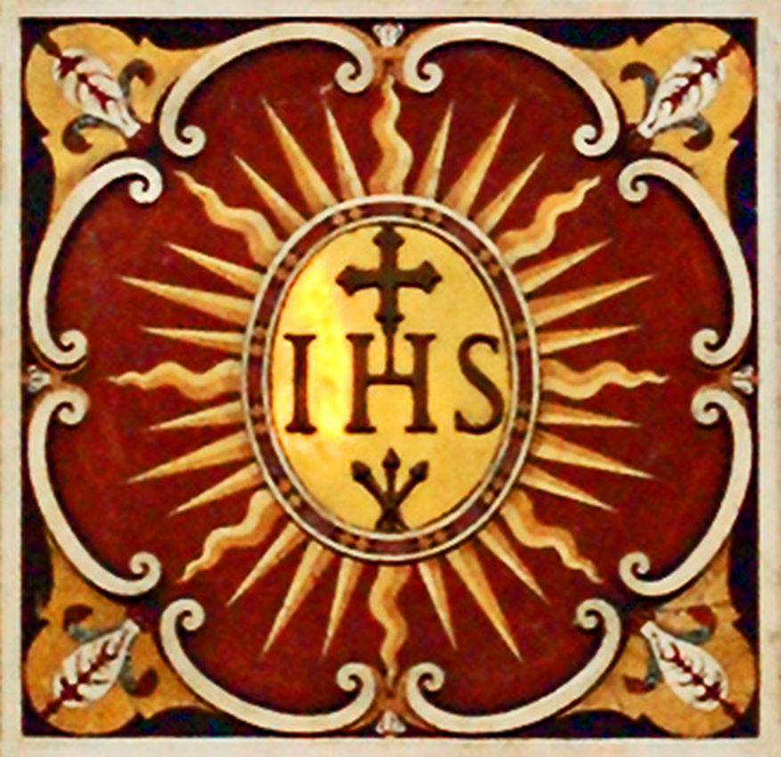 Photos: IHS Monogram--the Name of Jesus by Waiting For The Word (2006) via Flickr, CC.; St. Paul Church (Westerville, Ohio) -- Angel room, Jesus Loves Me by Nheyob (Own work) [CC BY-SA 3.0], via Wikimedia Commons.
