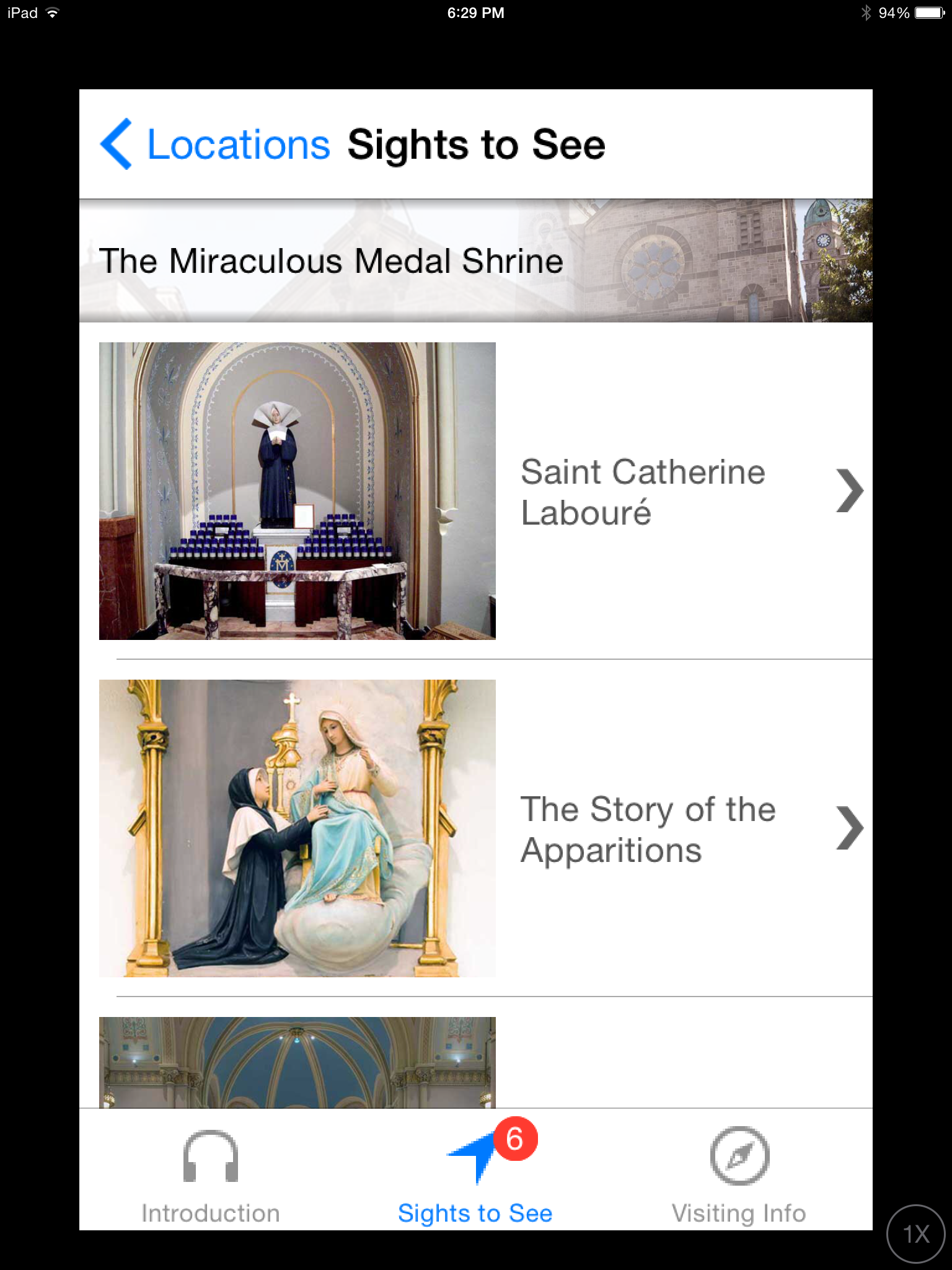 This handy Catholic Tour App is not finished yet – visitors can listen to an audio introduction to each Location, as well as peruse visiting information. This visiting information ranges from address and phone number to hours of operation and even links to the venue’s website.