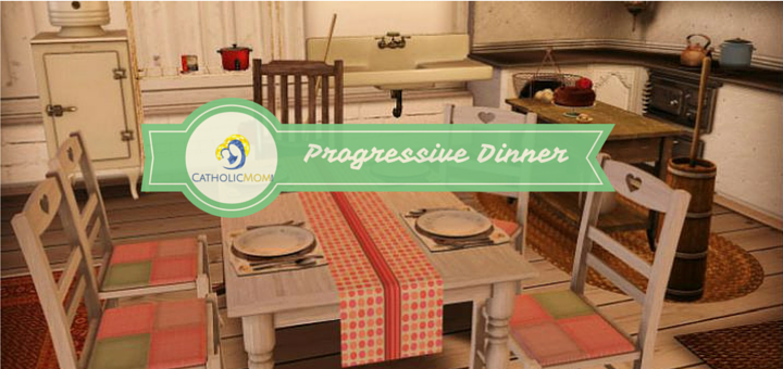We're setting the table in preparation for a Progressive Dinner here at CatholicMom.com! This is where guests move along from house to house, enjoying appetizers at the first stop, followed by other courses at other homes. Our Progressive Dinner will be a virtual one, but there's still plenty of room for fun and fellowship.