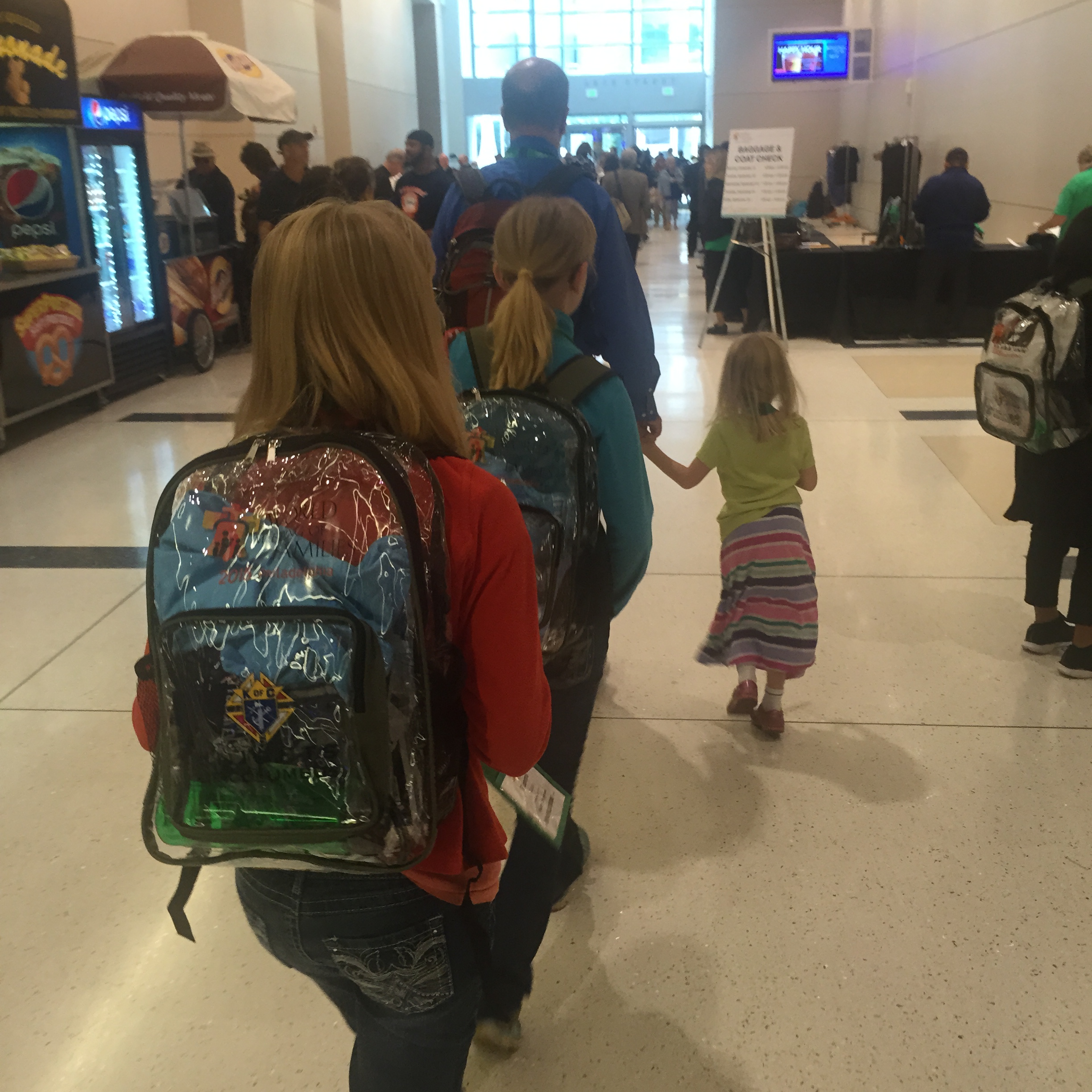 Had this event been held even twenty-five miles further from our home, we likely wouldn't have been able to attend as a family. We are ridiculously blessed in this matter. Perhaps I should say "clearly" blessed. Get it? Clearly? Because they gave us clear backpacks?