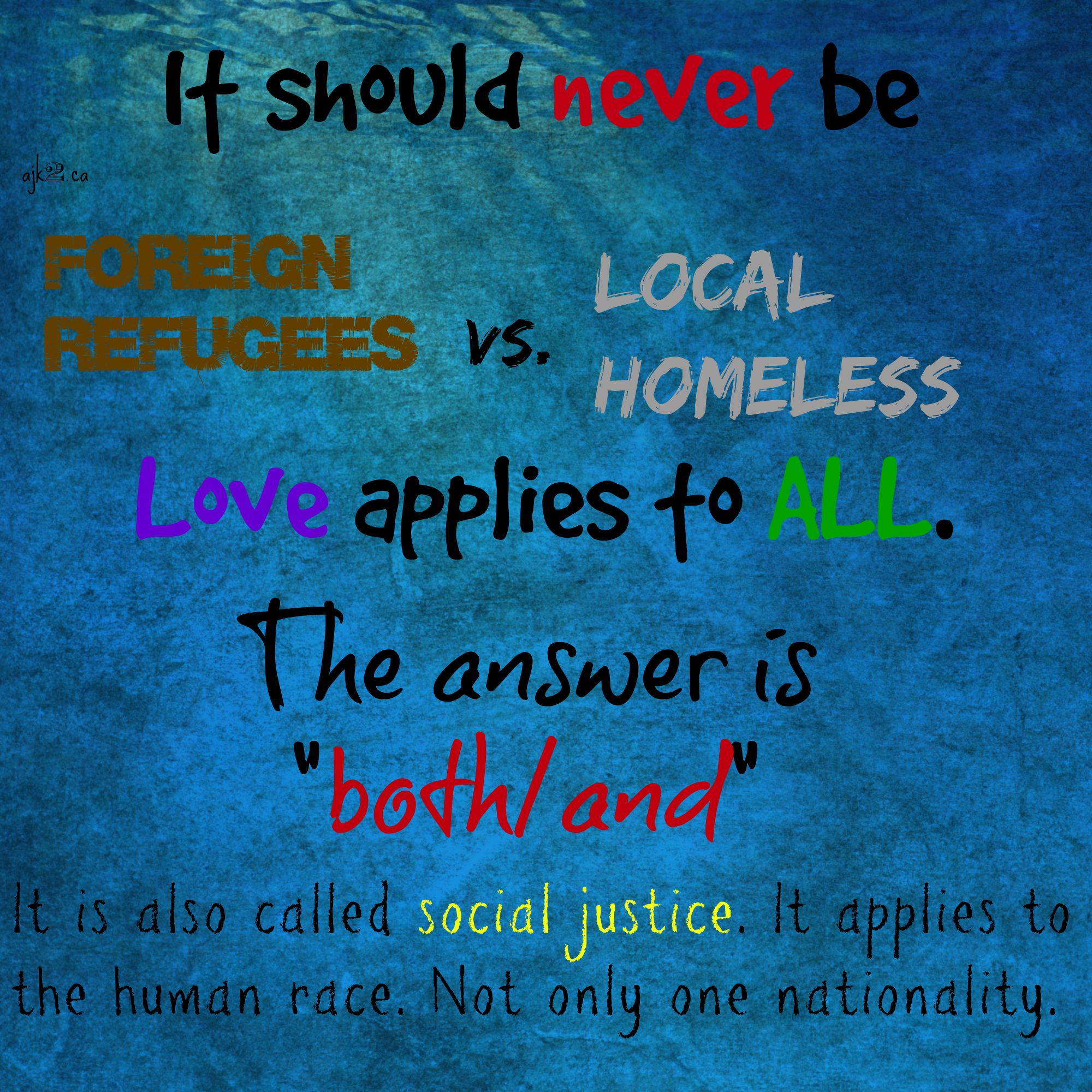Yes, the poor are literally in our midst. We also have local charities in place to aid those in the streets. Most of the time, they provide some form of help. Now, refugees - the ones fleeing violence. What are their options? What services do they have access to in order to help them through this troublesome time where they aren't sure if they'll live another day? Our neighbours who are being pepper sprayed by countries denying them access to safety; the ones who had to choose which children they could take with them when fleeing ISIS: