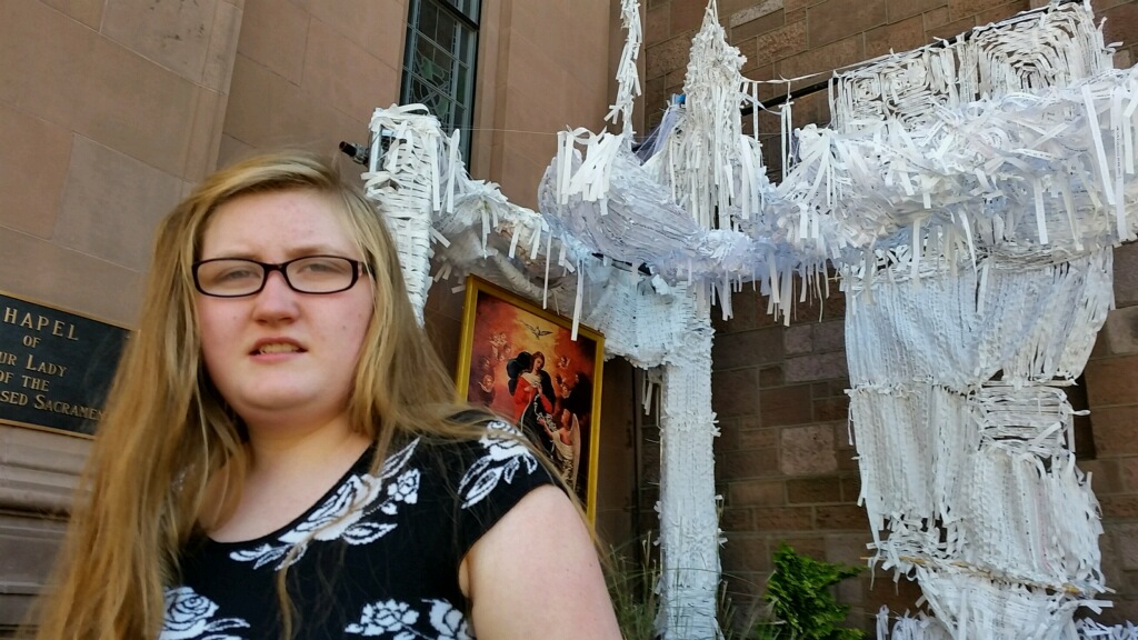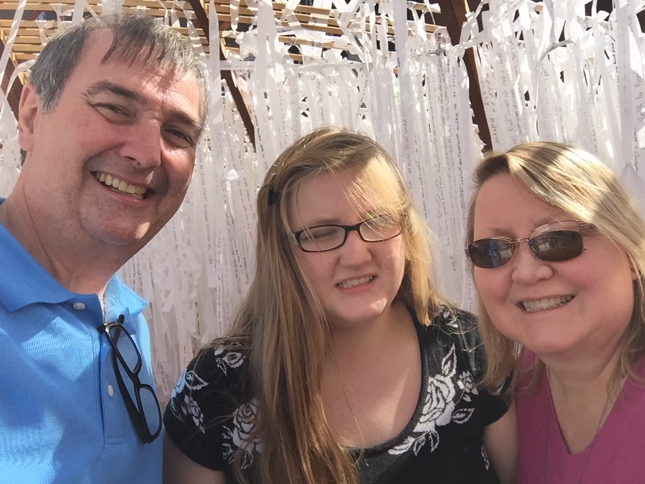 The highlight for us was to go to the Basilica of Saints Peter and Paul where the faithful had constructed a grotto of prayer intentions to Mary, Undoer of Knots. We had learned of the grotto from a friend who was volunteering there and had left a prayer intention to aid our daughter Danielle, who is non-verbal and has autism. As the days grew nearer to Pope Francis’ arrival and the number of prayer petitions increased, we decided to take Danielle there ourselves.