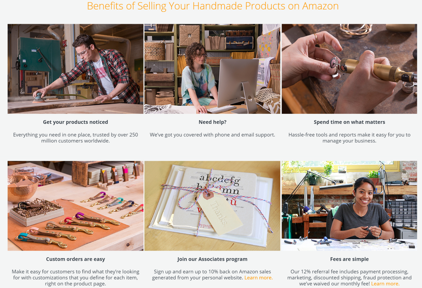 Amazon’s newest venture has more resources available than most other selling sites. Once your application to sell is accepted, you’ll begin receiving emails covering a wide variety of topics including: customizations, imaging, setting up product details, shipping, and more.