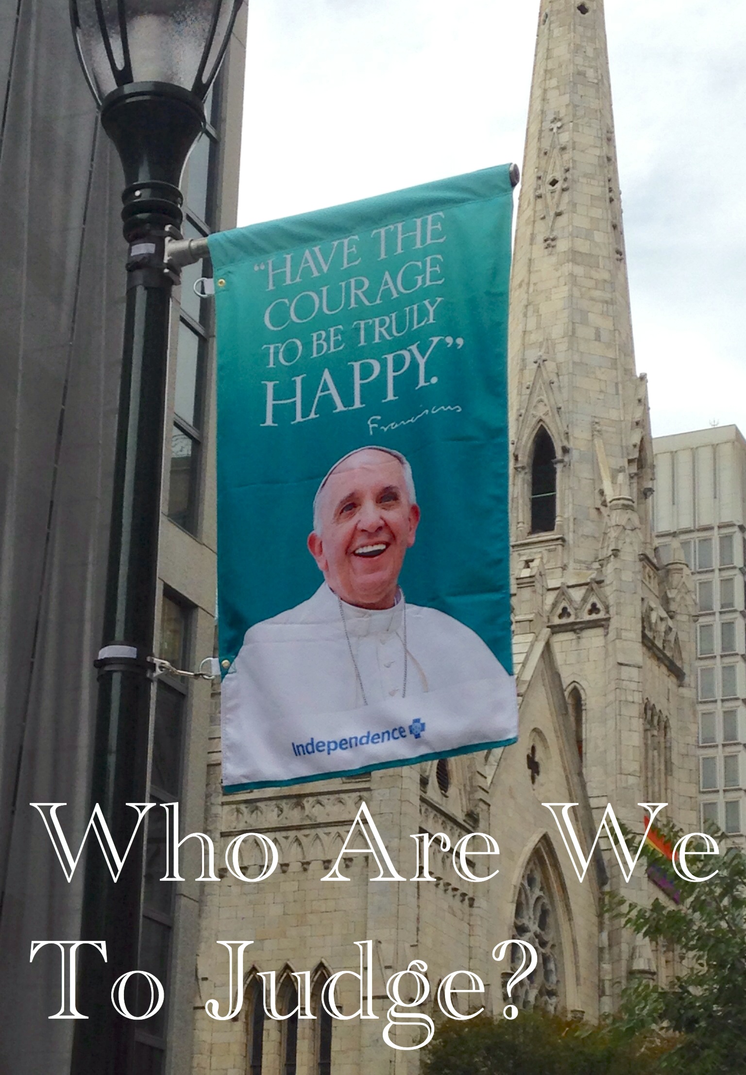I think many of the things Pope Francis says and does, like Jesus, are not for we “righteous” but for “sinners”–meeting and speaking to them where they are. “Those who are well do not need a physician, but the sick do,” Jesus pointedly said to the Pharisees when they challenged Him on eating with tax collectors and sinners. “Go and learn the meaning of the words, ‘I desire mercy, not sacrifice’” (Matthew 9:13). This is a pope of mercy, speaking to a world desperately in need of mercy. In the end, who are we to judge?