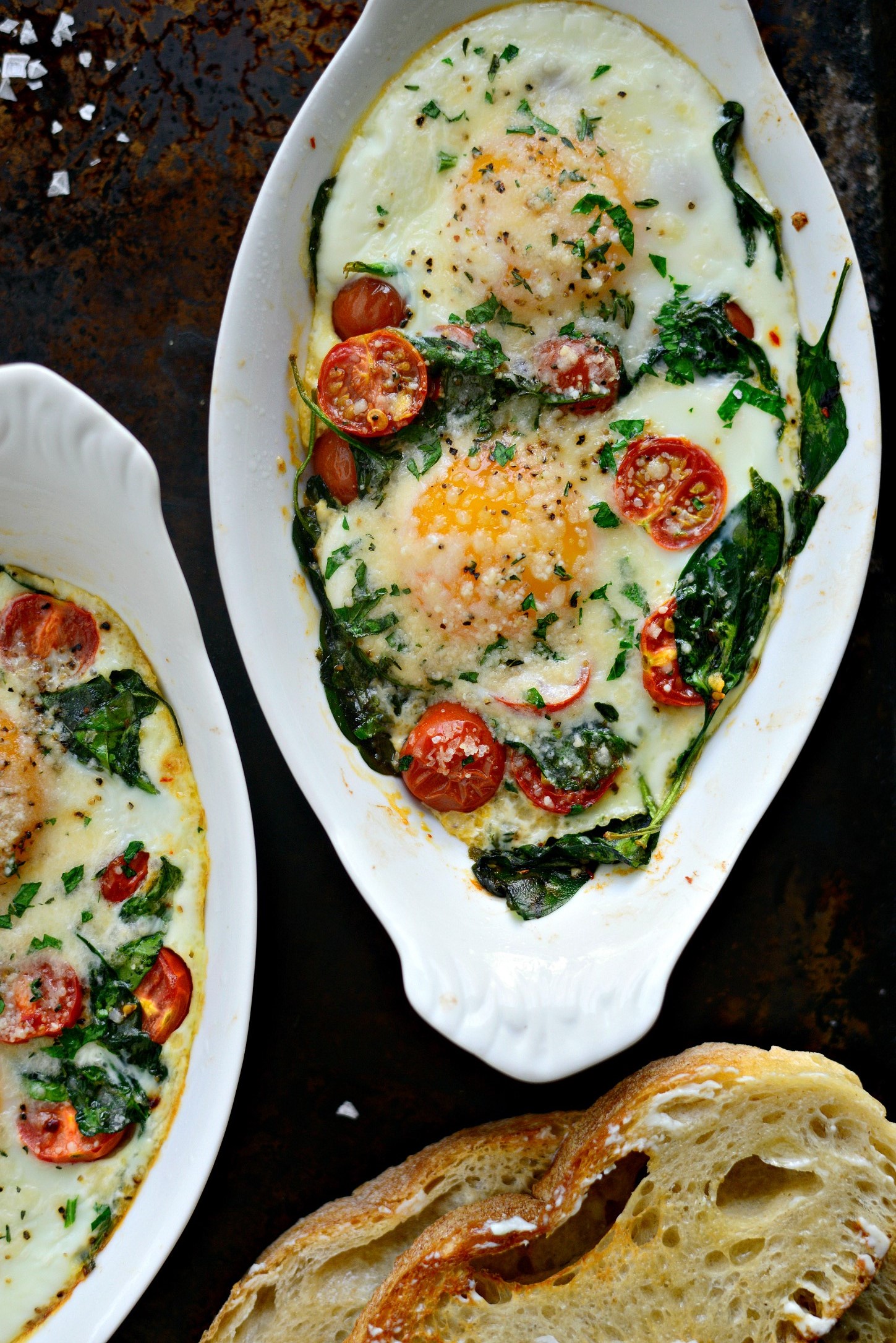 In our house, we like our eggs when the whites and yolk are set and you can eat them on thick slices of buttered toast. Because, frankly, who needs a fork when you have toasted and buttered ciabatta? (I kid. Sort of.) After one bite you’ll be thinking about these baked eggs for days, I tell you.