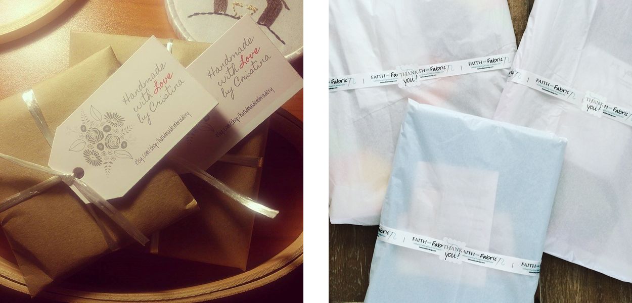 - Wrap Your Items: Now for the item you've sold. Wrapping items brings back fond memories of receiving gifts wrapped in traditional wrapping paper - and, whether the item is for the buyer or another person - gift wrapping the item is a great way to go. See the photo below; you can wrap in an additional layer of brown paper like Cristina of Handmaid Embroidery, in tissue paper like my quilts, or any other medium you choose. Include your brand if you have one; you can purchase branded ribbon at a very low price from many online sellers.