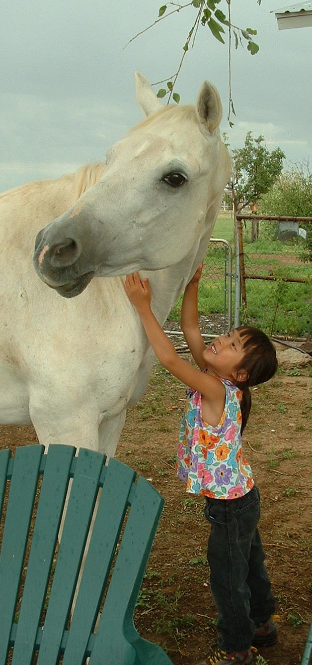 Brigit lists her horse as the most recent of the Wonders of her life. She has dreamed of having her own horse since she was two years old. When she befriended a pinto at the neighbor’s house, we thought that was close enough. But one day, the neighbor came over to explain, “The pinto doesn’t belong to me. She’s old. The owner isn’t paying the hay bills and now he says he’s going to send her to the dog food factory.” That’s how Brigit came to be a horse owner.
