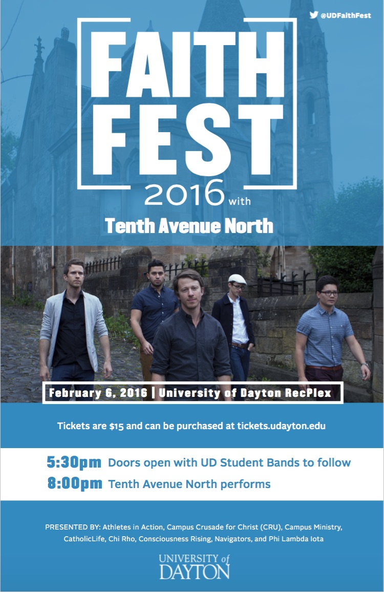 Tickets are now available for the second annual Faith Fest, a joyful celebration of faith and community that brings together people from the University and greater Dayton area. Tenth Avenue North, a Dove award-winning Christian band will perform after several student groups.