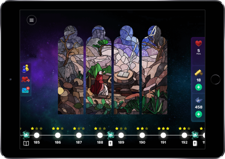 Our latest release is a joyful puzzle game called Stained Glass, featuring the #1 hit song “Oceans” by Hillsong United. National Christian leaders have called it “the most powerful content in the App Store today,” which is partly a testament to the Apple award-winning designers behind it, but also a witness to the beautiful manner in which the game presents God’s story.