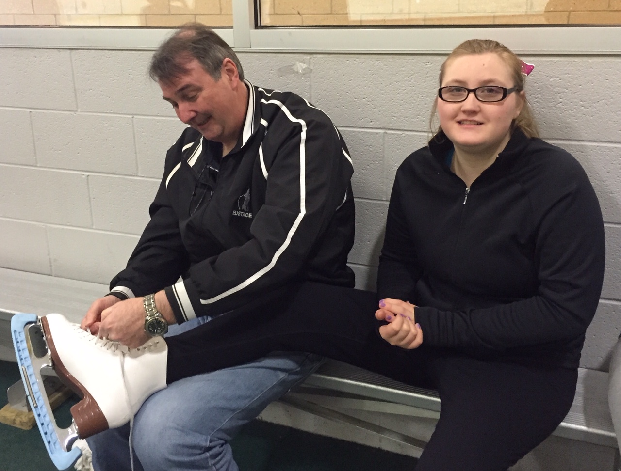 The figure skating team is made of the athletes with special needs and other students who mentor and coach. Week after week the coaches unselfishly give of their time to enhance the lives of Danielle and her peers. They share their talents by teaching skills, choreographing routines, selecting music and attending competitions. More than anything they have become good friends. Danielle has been fortunate to work with Katie, her coach, for several years now. Katie, although only a year older than Danielle, has become a wonderful teacher to her. She has discovered what approaches and strategies work and how to bring out the best in Danielle's skating. It is truly inspiring to watch.