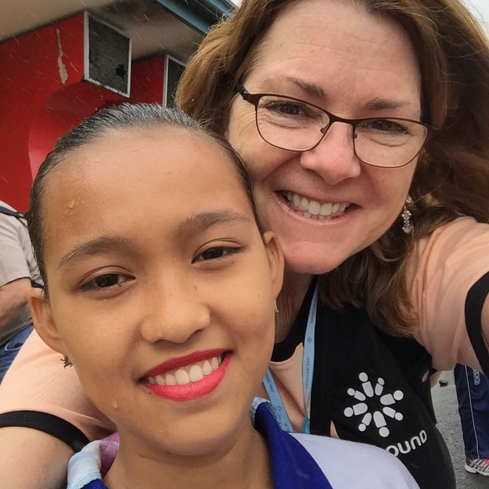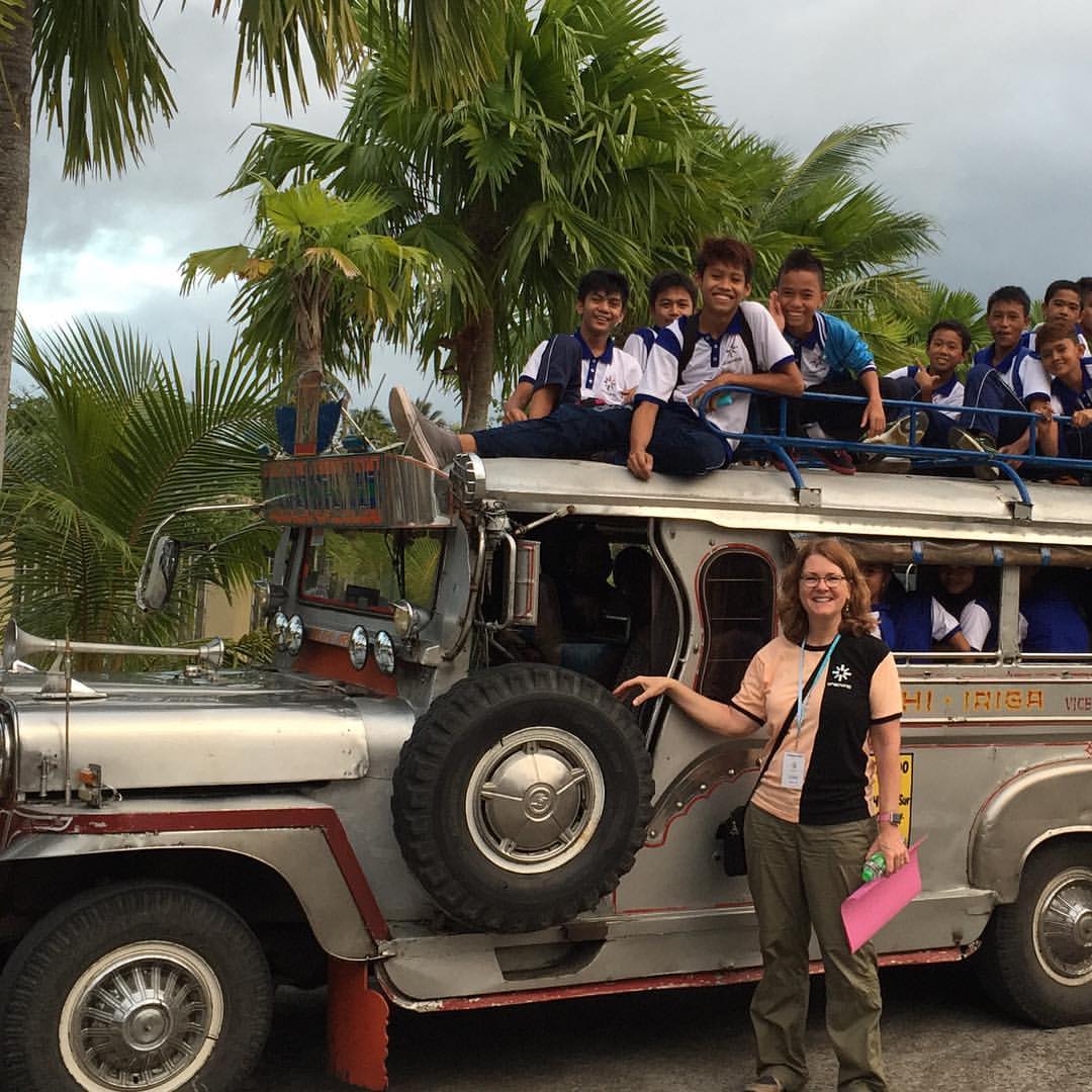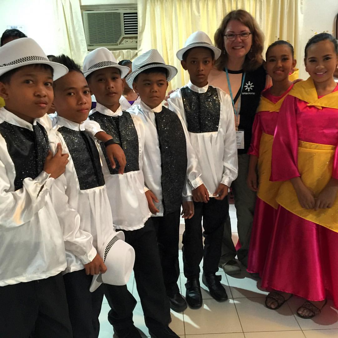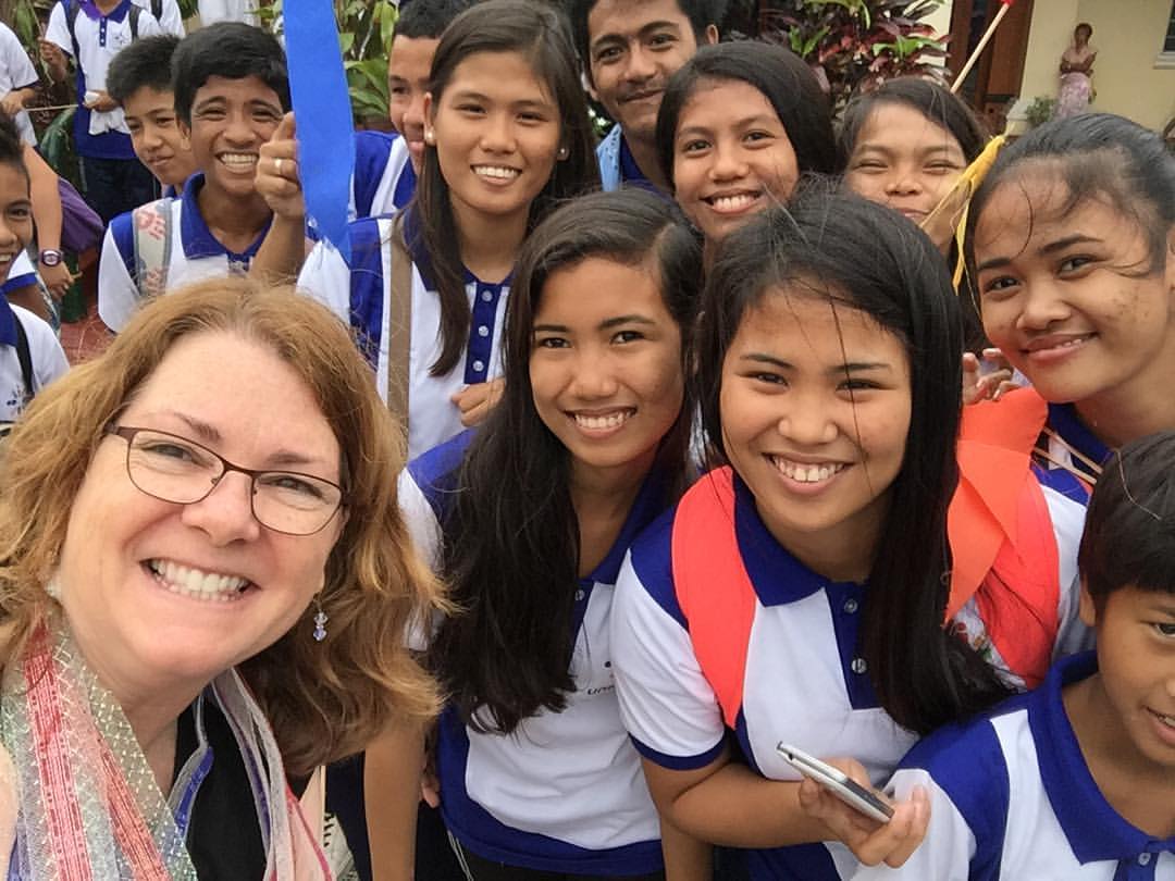 Our day started early as we caught an 8 am flight to head from Manila to Legazpi. Legazpi is is a the capital of the province of Albay in the Philippines and the largest city of the Bicol Region with a population of approximately 180,000. When we landed at the single runway Legazpi airport, our "rock star" treatment commenced, with hundreds of Unbound program participants greeting us with song and handmade fabric leis. One precious young woman even had a sign with my name on it! As I asked her shyly for a selfie, I had no idea how that would become the theme for the day!
