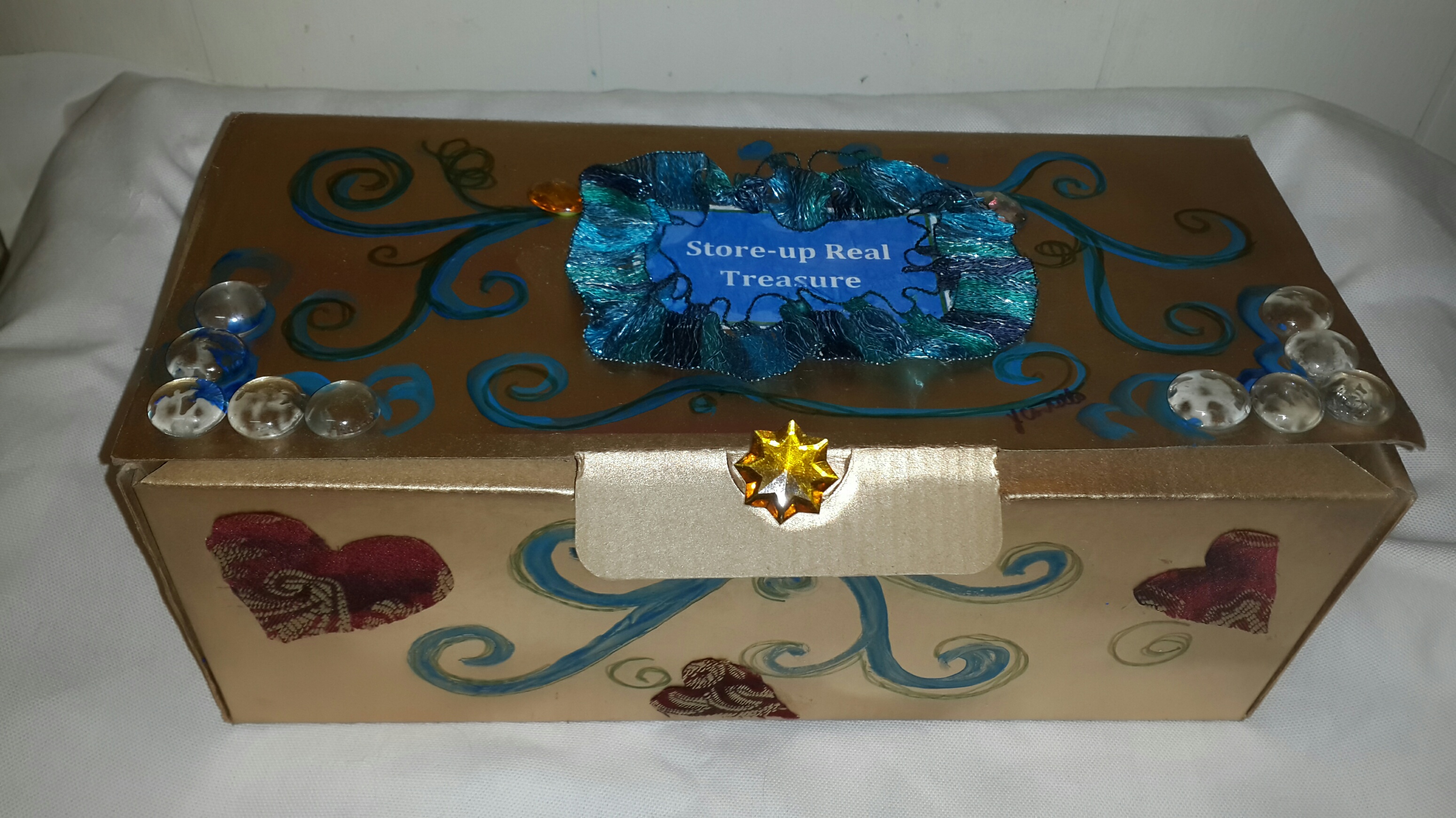 So when I started teaching catechism, I realized that I wanted to help kids recognize where to go to seek “real treasure.” Lately, I have been having my students create beautiful-looking boxes and put inside them images of Jesus and Mary along with written prayers.