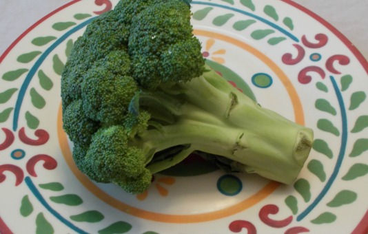 Turning to my son, I proffer the florets with a flourish, asking, “Would you like to carry your own broccoli, son?”